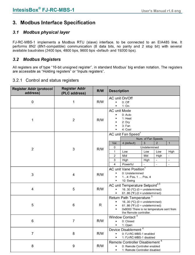Enviamos comandos al HVAC vía ModBus. Necesitamos el manual de integración del HVAC para interpretar correctamente el protocolo. Debe desarrollarse un driver dedicado para ese modelo específico de máquina.
