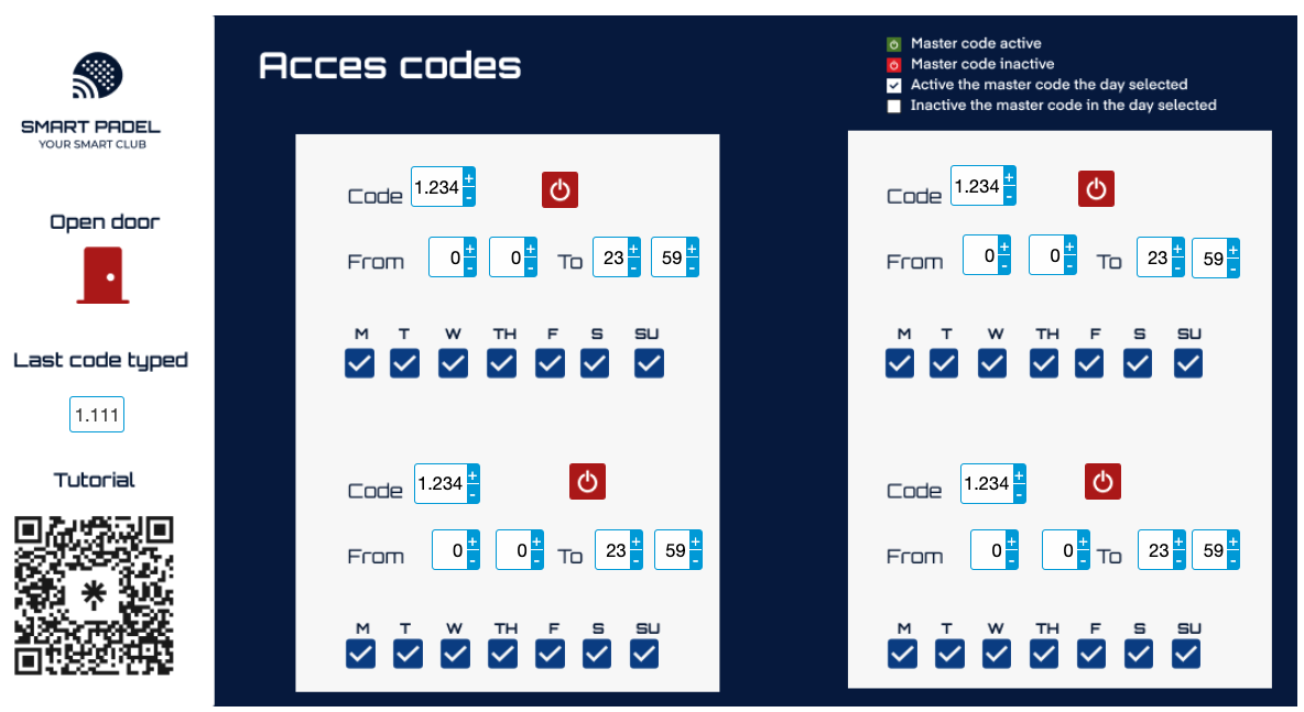 Tienes cuatro códigos maestros por teclado. Puedes configurarlos según los días. Sin embargo, primero debes activarlos.
