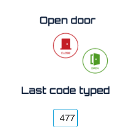 Alternativamente, puedes abrir la puerta de forma remota haciendo clic en el gadget de la puerta en la interfaz. Si estás usando los teclados para hacer pruebas, deberías ver el último código introducido mostrado en la interfaz. Si el código no aparece, puede haber un problema con el cableado desde el PE11 hasta el teclado que debe revisarse.