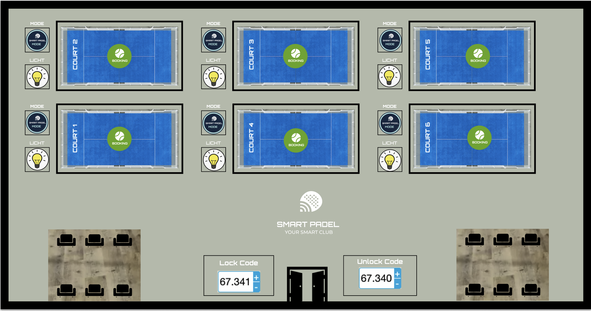 El sistema de códigos de Bloqueo y Desbloqueo de Smart Padel está diseñado para simplificar la gestión de accesos en horas punta o cuando las instalaciones se comparten con actividades no principales. Este sistema garantiza una organización fluida y un uso óptimo de los recursos del club.